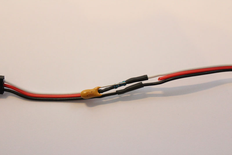 然後,Signal wire 及 Negative 位,都接上一個 10 uF 的 capacitor 電容。