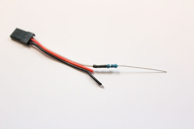 首先,把一條 servo cable 伺服器線,的 "signal wire" 連接到一個 4.7kΩ 的電阻 (都可以用 10kΩ )。焊上後,可以用熱縮通包住個焊位。